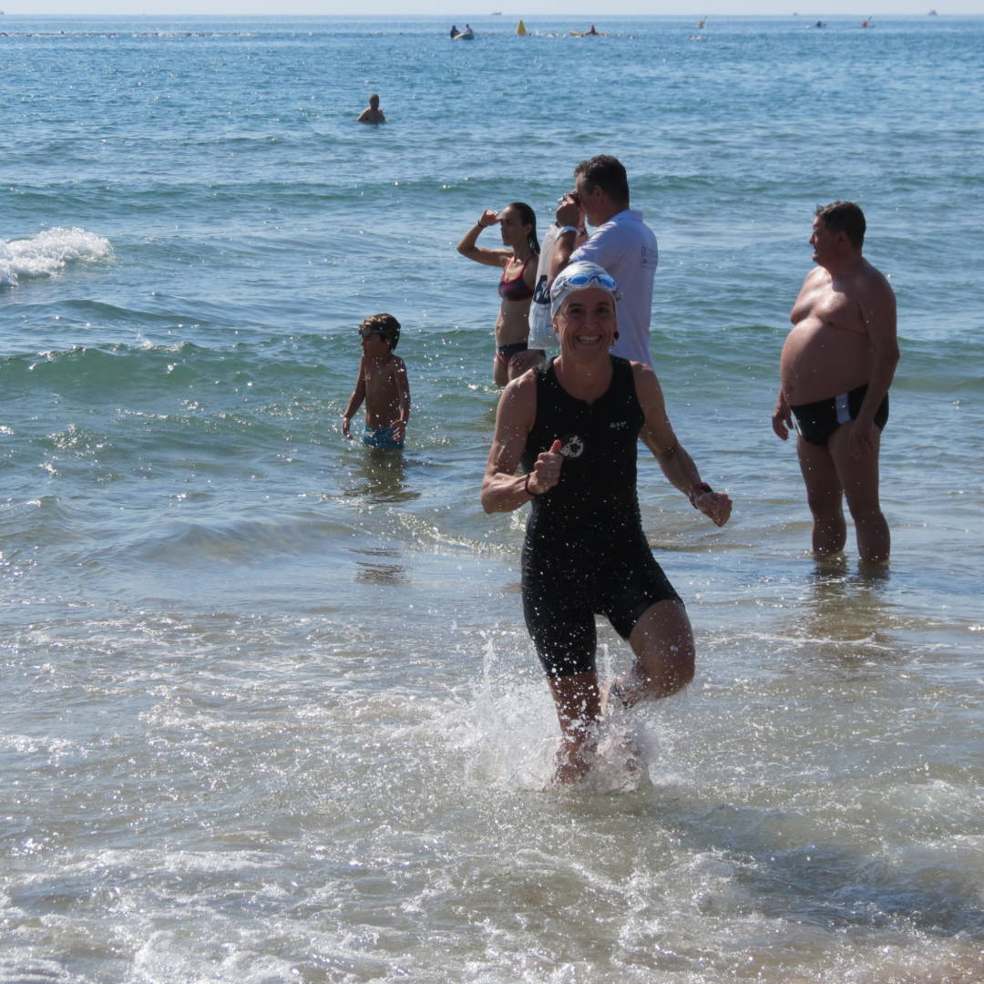 Lo mejor, no sentir la presión de tener que quedar obligatoriamente de las primeras. Era una presión distinta, de cómo superar mi propio crono, pero sin morir en el intento. Por cierto, me encantó la mar de Sagunto. Clarita, tranquila… Avanzamos también en el mar.