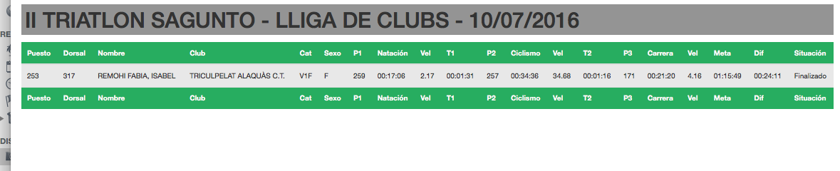 Ays, cuánto necesito mejorar en este deporte¡¡, creo que por eso, me gusta más cada vez. Realmente mejoré la natación y sobretodo la bici, y bajé 4 minutos en total con respecto al último triatlon (pinedo), pero aún así, me sentí leeennnntaaaa, hasta en carrera. Aunque, si he de ser sincera, la competencia era brutal, estaban las mejores de la Liga de clubs de la Comunidad, y yo competía en esa liga, así que, lo que me queda es observar mucho y aprender. Y seguir. Claro, seguir.